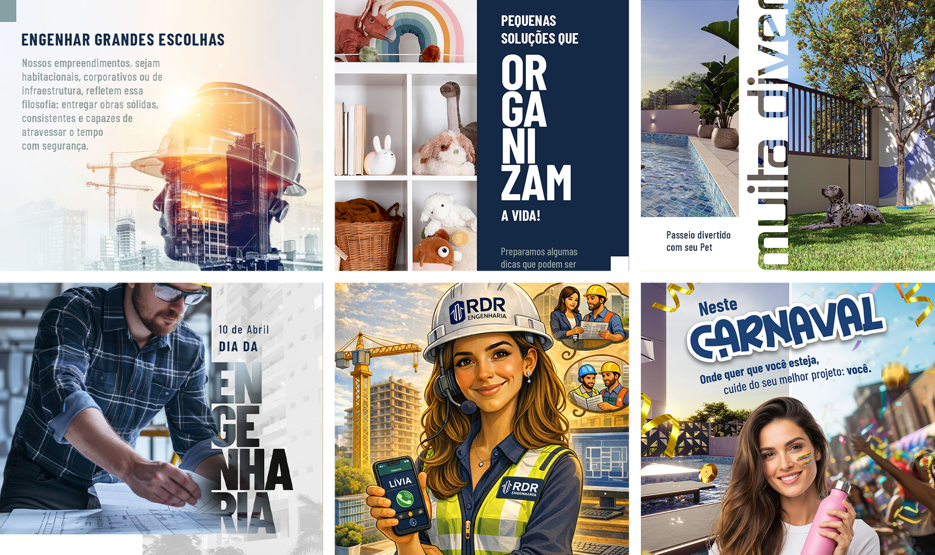 Do branding ao tráfego pago. Da identidade visual ao post nas redes sociais. Da consultoria e planejamento de campanha ao roteiro de vídeo. Tudo conectado ao seu objetivo, ao seu time, ao seu momento.